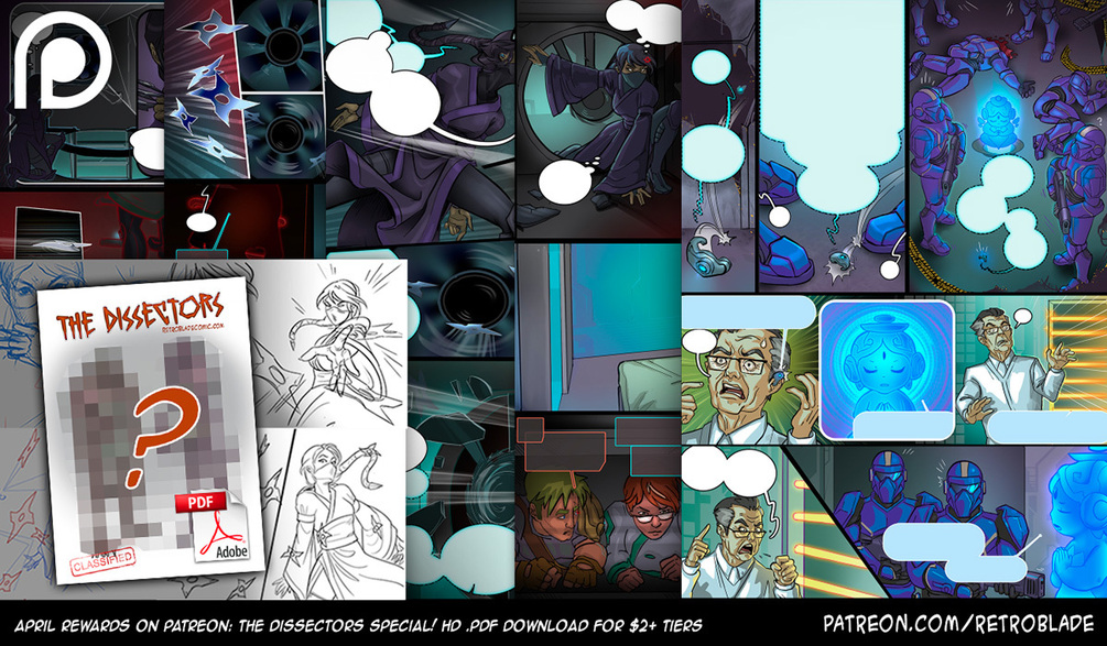 The ZIP file in this package also includes the process for April's comic pages- pencils, inks, and HD pages without text, giving you an insight into how RetroBlade is created.